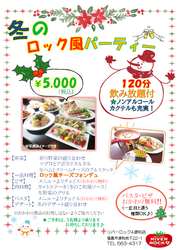 | ピザ | メニューの中からチョイス(おかわり無料) |