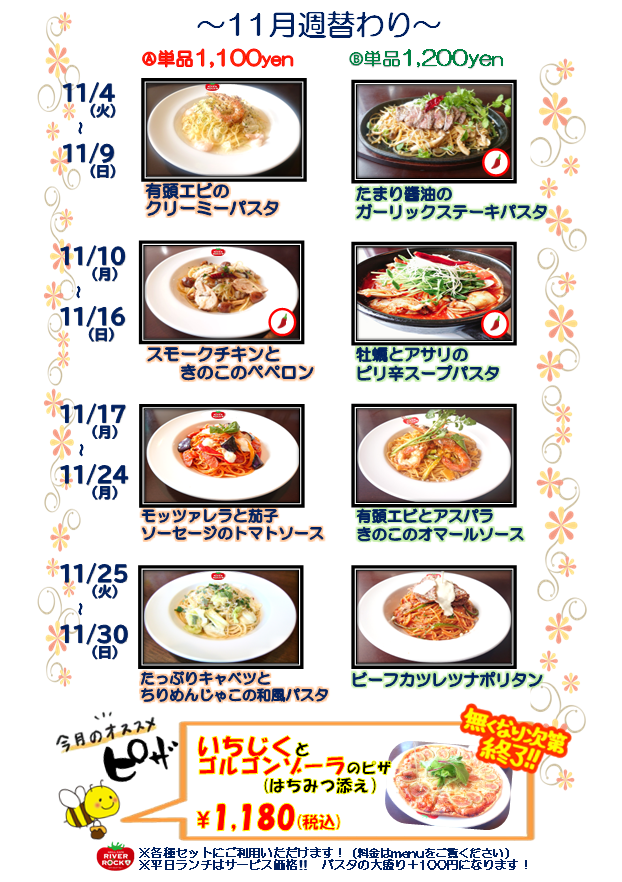 - メニューは予告なく変更になる場合がございます。あらかじめご了承下さい。