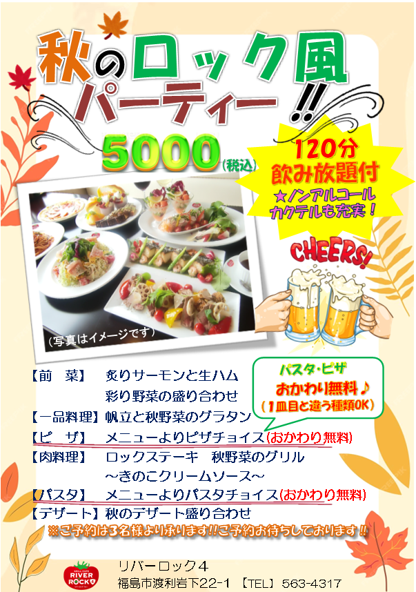 アルコール飲み放題 | ¥1200(90分)※ソフトドリンク飲み放題は¥500になります |