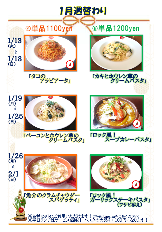 • メニューは予告なく変更になる場合がございます。あらかじめご了承下さい。